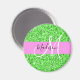 El purpurina verde y rosa brillante y brillante deslumbra el nombre del monograma blanco y el imán inicial. Su nombre personalizado y su monograma están escritos en un guión elegante con letras a mano con un fondo rosado. Puede cambiar el color del texto y el estilo y el tamaño del tipo de letra mediante la opción personalizar. ¡Un regalo perfecto de cumpleaños o Navidades!