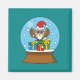 Un ilustracion de un globo de nieve con búho santa claus usando un capó rojo y una larga barba blanca con sus tres coloridos regalos para Navidades. Este lindo diseño de lóbulo personalizado kawaii es una idea de regalo para los amantes de las vacaciones de invierno, los amantes de las cúpulas de nieve y los amantes de la Navidad.