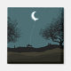 Este diseño presenta un encantador ilustracion de una luna creciente sostenida sobre una cuerda, como si fuera un globo. Un chica se sienta en un banco de un parque sosteniendo la cuerda.