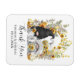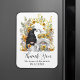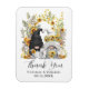 Bodas personalizadas gracias a imanes favoritos para sus invitados, con un gnomo de novia y novio y un ilustracion de arco floral de girasol. Edite la plantilla con una fecha y los nombres de los recién casados.