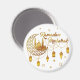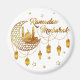 Bring a touch of spiritual elegance to your kitchen this holy month with our stunning gold-themed Ramadan Mubarak magnet. The design features a detailed mosque silhouette inside a geometric crescent moon, beautifully accented by shimmering hanging lanterns and traditional Arabic calligraphy. Set against a clean, ivory background with scattered golden stars, this high-quality magnet is a perfect way to display Iftar schedules or heartfelt holiday wishes on your refrigerator. It serves as a sophisticated decorative accent or a thoughtful small gift for friends and family, blending modern luxury with timeless Islamic symbols to celebrate the season.