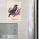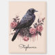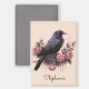 Set the tone for a moody whimsical aesthetic with this personalized name magnet. This design features a detailed black raven perched among dripping pink roses rendered in a soft blush and charcoal palette. It is the perfect way to celebrate a special birthday or a thoughtful gift,