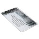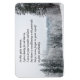 Este imán personalizado fue creado usando una oración mía como superpuesto en una de mis impresiones de arte. Como artista cristiano, busco asegurarme de que la oración y el pensamiento que estoy usando sea un buen matrimonio con la impresión de arte que puse. En este funda en particular las palabras se veían muy bien en mi fotografía de un claro cubierto de nieve en el bosque.