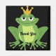 Una rana de aspecto alegre con una corona con una nota de agradecimiento, que es editable. Puede cambiar el texto a lo que desee o borrar si no es necesario.