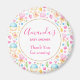 Un fiesta te agradece imán con un patrón delicioso y caprichoso. Corazones, cartas de amor, muffins, tulipanes y cerezas traen alegría y felicidad a este lindo y pequeño patrón. colores pastel bonito. Un círculo blanco con un falso borde de Relieve metalizado dorado sobre la parte superior con tu texto dentro.