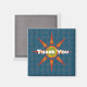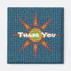 Un sol brillante, suroeste, mosaico, naranja y amarillo se ve adornado con un fondo azul oscuro que adorna este imán de apreciación de la nevera. El sol naranja y amarillo intenso se centra en este imán barato junto con "Gracias" que aparece en el centro del sol. El texto puede ser personalizado si lo desea.