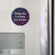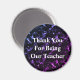 Este imán de apreciación de los profesores presenta un fondo vibrante en color morado y azul brillante. "Gracias por ser nuestro profesor" aparece en el centro en blanco y puede ser personalizado para satisfacer sus necesidades. Este es un imán barato que hace un regalo de apreciación único para su profesor durante la semana de apreciación del profesor o al final del año.