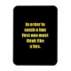 El texto amarillo sobre un fondo negro proporciona una visión humorística sobre la resolución de problemas al sugerir que se debe "pensar como un bus" para atraparlo. Las letras en negrita mejoran el tono lúdico del mensaje.
