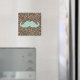 Un verde azulado bigote divertido y bigote verde y un patrón de impresión de leopardo amarillo y negro. Un diseño retro fresco con un bigote divertido de geek de los 80 sobre fondo de impresión animal. La idea de regalo de humor perfecto para ella en cualquier ocasión