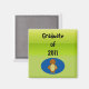 Dales un imán con el año de su graduación... tómate uno con una tarjeta de graduación... Fondo verde con un poco de búho...