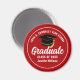 Este moderno imán para graduados de grado rojo y blanco personalizado presenta una elegante tipografía en blanco de su nombre de instituto o universidad para la clase de 2025. Personalizar con tu año de graduación bajo el guión manuscrito negro de la moda y el tapón negro de grad para una gran graduación personalizada.