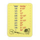 Gráfica de medida de la medición del imán útil. Muestra conversiones de yardas a pulgadas. Práctico para alcantarillas y edredones para ayudarles a determinar el criterio para sus proyectos artesanales. El diseño presenta un borde de palo rojo, unas tijeras vintage y una cinta de medida.