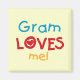 Gram Me Ama camisetas, tarjetas, pegatinas, bolsas de pantalones y mucho más con colorido rojo, amarillo y azul texto y diseño cardíaco. ¡Este Gram me ama ropa y artículos de regalo hará sonreír graso!