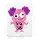 Un diseño lindo y divertido de la hermana mayor con un monstruo rosa peludo con ojos grandes y una sonrisa en camisetas de la hermana mayor, tazas, imanes, botones, tarjetas, pegatinas, llaveros, almohadas y muchas otras ropas de sis grandes y artículos de regalo.
