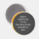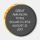 Imagen gris oscuro que simboliza la Luna sobre la imagen del sol brillante. Texto blanco Gran Eclipse solar total estadounidense, 21 de agosto de 2017 contra el fondo gris. Imán redondo divertido para cualquiera. ¡Personalizable. Puede cambiar imágenes y puede cambiar o eliminar todos los textos de plantilla. Diviértete y hazlo para estar listo para el extraño evento astronómico.