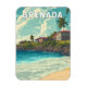 Diseño de viajes vectoriales retro de Granada. Granada, conocida como la Isla de las Especias del Caribe, cautiva a los visitantes con sus playas de arena blanca, sus exuberantes selvas tropicales y su rico patrimonio cultural.
