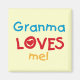 Granma me ama camisetas, pantalones de vestir, tarjetas, bolsas y otros artículos con un diseño de texto azul, rojo y amarillo.