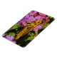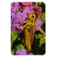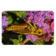 El saltamontes es un símbolo de buena suerte en todo el mundo. Este imán flexible de fotografía artística fina tiene un saltamontes amarillo y marrón que sube una flor de musgo ageratum rosa, rojo y magenta. Está mirando sobre su hombro al fotógrafo con su enorme oro y ojo negro. El follaje verde adorable enmarca la fotografía. ¡Tal vez este imán sea un encanto afortunado!