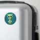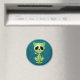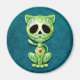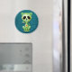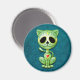 El gatito verde adorable está decorado con motivos de remolinos y puntos. Los pedales de flores amarillas rodean los ojos negros puros en la tradición del Día de los Cacahuetes de azúcar Muertos. El gato está sentado, mirando hacia adelante con la cola ondeando en el fondo. La cabeza sobredimensionada se sienta sobre un pequeño cuerpo que crea una apariencia juguetona y personalizado. Una estrella de cinco puntos se sienta en medio de la frente del gatito, mientras que un corazón rojo brillante y amarillo aparece en el centro del pecho. Una sombra cae sobre el fondo azul profundo que hace que el diseño parezca flotar justo por encima de la superficie de este imán. Este lindo gato es un diseño divertido y elegante inspirado en los hermosos patrones de los cráneos del azúcar del Día de los Muertos.