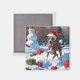Imán Greyhound corre en Nieve con Gorra de Navidades