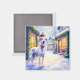 Imán Greyhound Snowy Village Santa Hat Christmas Art