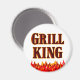 Grill King dijo chistoso bbq en un tipo de letra flameante occidental para cocineros y cocineros cocineros. Con arte gráfico de llamas rojas y naranjas en la parte inferior del diseño. Otro original de MomsRetro.