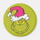 Esta fantástica y audaz ilustración es un retrato cercano del Grinch en pleno modo travieso. Tiene su característica sonrisa astuta y ojos amarillos brillantes, pero su apariencia se actualiza con un sombrero grande y esponjoso de Santa en un divertido y inesperado color rosa/fucsia en lugar del tradicional rojo. Este gráfico es perfecto para cualquiera que ame las fiestas pero adopte un estilo no tradicional, deliciosamente gruñón y colorido.