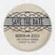 Elegante y elegante Borde Flourish Save the Date Magnet con un fondo vintage y un elegante borde de rayas gris claro y giratorio. Este elegante diseño es la elección perfecta para anunciar su boda inspirado en la moda de deco. Fácil de personalizar, simplemente agregue los detalles de su boda en los campos de texto proporcionados. Haga clic en "Personalizar" para encontrar más opciones de personalización.
