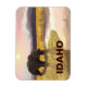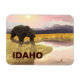 Una pintura digital de un oso pardo acercándose a un estanque mientras el sol desciende sobre montañas lejanas. También está presente el texto que dice "Idaho".