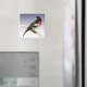 Este imán presenta el Grosbeak macho con pechos de Rosa, un ave llamativa con un pecho brillante subió contrastado con plumas blancas y negras y un fuerte pico bloqueante. Él es un pájaro cantante con una maravillosa melodía. La hembra es marrón y blanca. Se reproducen en América del Norte fresca y templada, migrando a América tropical en invierno.