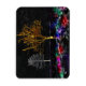 Una escena de fantasía 3D creada en Vue, que representa una oscura caverna subterránea. Las colinas negras están recubiertas de plantas con rubíes brillantes, zafiros, esmeraldas, citrinas, avispas y amatistas en lugar de flores. Los árboles de oro y plata brillantes se inclinan por las joyas en crecimiento.