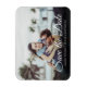 Esta moderna foto de guión guarda el imán de fecha que contiene una foto de sangrado completa con un guión que guarda la fecha sobre sus nombres, fecha y lugar en texto blanco. Diseñado por Thisisnotme©
