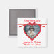 Marco en forma de corazón con cinta roja. Reemplace la imagen de marcador de posición con la imagen. Edita texto y tienes un imán personalizado de la clase.