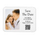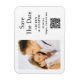 Guardar la fecha en blanco estilo manuscrito blanco estilo Moderno imanes Bodas con fondo blanco con la foto de su personalizado. Personalice el texto editando el texto en los cuadros de texto proporcionados y agregue la dirección URL de su sitio web para el código QR de su personalizado. Diseñado por ©Evco Studio www.zazzle.com/store/evcostudio