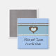 Marrón azul y chocolate acentúan este imán de "salva la fecha"... deja que tus amigos y familia sepan de tu gran evento...