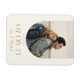 Imán para guardar la fecha de boda moderno con un diseño elegante y chic y estilo boho minimalista con tu foto en un marco de arco.