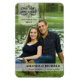 Guarde los imanes de fecha — Magnetoscopio de fotos sofisticado y elegante, contemporáneo y sin bordes — acentos transparentes, texto clásico tradicional de la plantilla de letras formales. Perfecto para bodas de estilo contemporáneo o vintage en cualquier estación: primavera, verano, otoño e invierno. Añade tu foto y personalizar los nombres de la novia y del novio y la fecha del boda para crear tus imanes personalizados únicos y personalizados para guardar la fecha. Los imanes rectangulares de lujo planos y flexibles son enviables por correo y hacen encantadores recordatorios románticos que caben perfectamente en sobres de correo para tarjetas de invitación. Excelente regalo de recordatorio o favores para los invitados especiales en su lista. Paquetes de juego de boda, regalos de novia de moda y de diseño, favores de ducha, invitaciones, tarjetas, franqueo, accesorios y otros artículos esenciales para bodas disponibles bajo petición. Nota: Tamaño para imanes grandes rectangulares de gama alta: haga clic en opciones para otros tamaños disponibles. Visita la tienda SquirrelHugger para ver más opciones de colores y estilos.