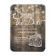 Boda Rústica Guardar las plantillas de imanes de fecha - Elegante Guardar el guión de fecha y las luces de cadena de mason vintage sobre fondo rústico de madera. Un diseño perfecto para tu gran día. ¡Todo el estilo de texto, colores, tamaños se pueden modificar para adaptarlo a sus necesidades!
