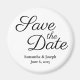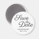 A guardar la fecha invita a imán con un bonito estilo caligráfico. Personalizar el fondo blanco y los colores de fuente negros. Un imán de media ronda para guardar las fechas.