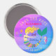 Bonito, personalizado, adorable pequeña Sirenita con cola colorida, y lindo caballito de mar morado en combinación con el fondo neón azul violeta de las olas. Hermoso, único, caprichoso tercer cumpleaños Salven el imán de la fecha. La elección perfecta para los cumpleaños de verano y la combinación perfecta con los productos de papel de cumpleaños "Under The Sea".