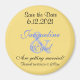 Guarde los imanes del Boda de fechas. fondo amarillo bonito. Personalice con los primeros nombres y fecha de Boda de Bride & Groom en texto en azul claro y negro. Encantador de mandar a sus bodas invitados a poner su refrigerador u otra superficie magnética como un agradable recordatorio de la próxima fecha de boda. Diseños originales © TamiraZDesigns.