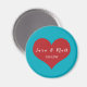 Estos adorables imanes color turquesa y rojo hacen de la diversión salvar el recordatorio de la fecha, el favor de la boda, gracias a sus invitados bodas o incluso un pequeño regalo de aniversario. Agregue sus propios nombres, fecha, tipo de letra y color de fondo para personalizar del mensaje.