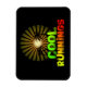 Arte gráfico de las palabras GUAY RUNNINGS con silueta de cocoteros y diseño solar en el fondo