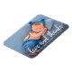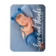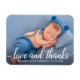Imán de agradecimiento de foto de amor y gracias de nueva bebé con guión de caligrafía moderna