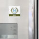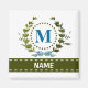 Una delicada guirnalda de hiedra con un lazo a rayas azules está superpuesta sobre un fondo blanco fresco. El diseño apropiado para la boda presenta el monograma "M" en azul. El imán se puede personalizar con cualquier nombre sobre la cinta verde. Consejo de diseño: para la fuente que se muestra aquí, use mayúsculas para el nombre.