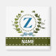 Una delicada guirnalda de hiedra con un lazo a rayas azules está superpuesta sobre un fondo blanco fresco. El diseño apropiado para la boda presenta el monograma "Z" en azul. El imán se puede personalizar con cualquier nombre sobre la cinta verde. Consejo de diseño: Para la fuente que se muestra aquí, use mayúsculas para el nombre.