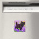 ¡Magnet con un gatito negro Gustav Klimt! Esta belleza de ojos anchos posa en un campo verde de flores moradas. Un regalo para los amantes del gato y del arte austriaco.