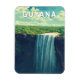 Diseño de viajes vectoriales retro de Guyana. Desde las impresionantes Cataratas Kaieteur hasta la remota sabana de Rupunununi, es un paraíso para los viajeros que buscan auténtica aventura e inmersión natural.