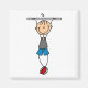 Una figura de palo haciendo ejercicio de diseño con una figura de palo masculino haciendo montones de camisetas, tazas, imanes, tarjetas, pegatinas y otros artículos.