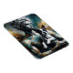 Un guapo hada sostiene a su bebé Boston Terrier y muestra sus brazos musculares